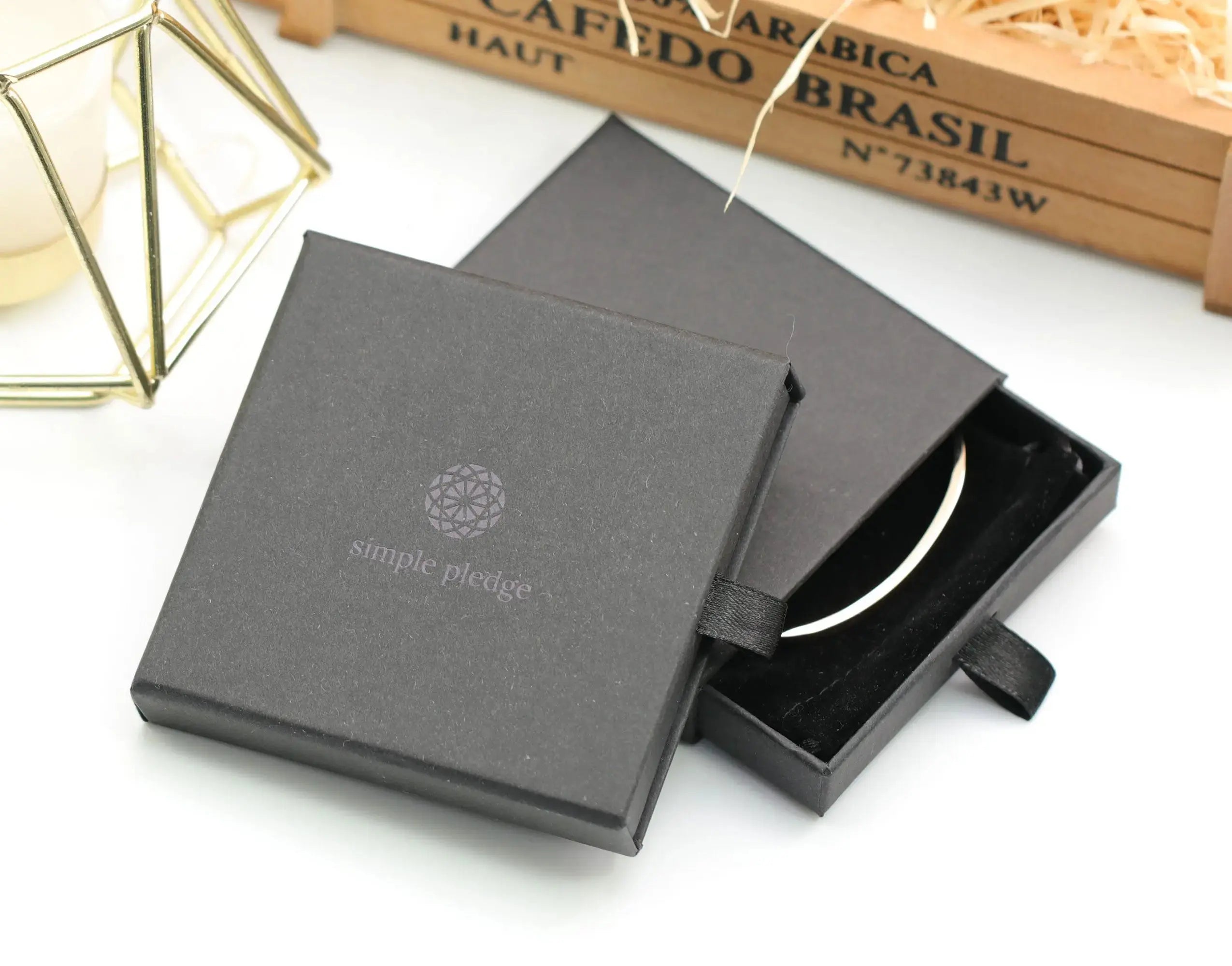 Each of our bangles includes not only a message, but also elegant gift packaging. Your chosen piece of jewelry rests in a soft velvet pouch, nestled in an exquisite gift box - ready to touch hearts.